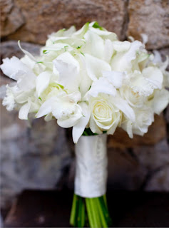 cattleya-orchidea. Ezek a virágok az eleganciát képviselik, jó választás lehet, ha a ruha és a helyszín lehetővé teszik ezt a stílust.